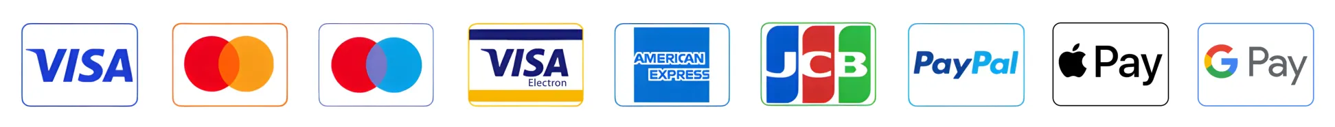 We accept all major credit cards (VISA, Mastercard, AMEX) and PayPal payments. We do not accept personal checks, money orders, direct bank transfers, debit card payments, or cash on delivery.