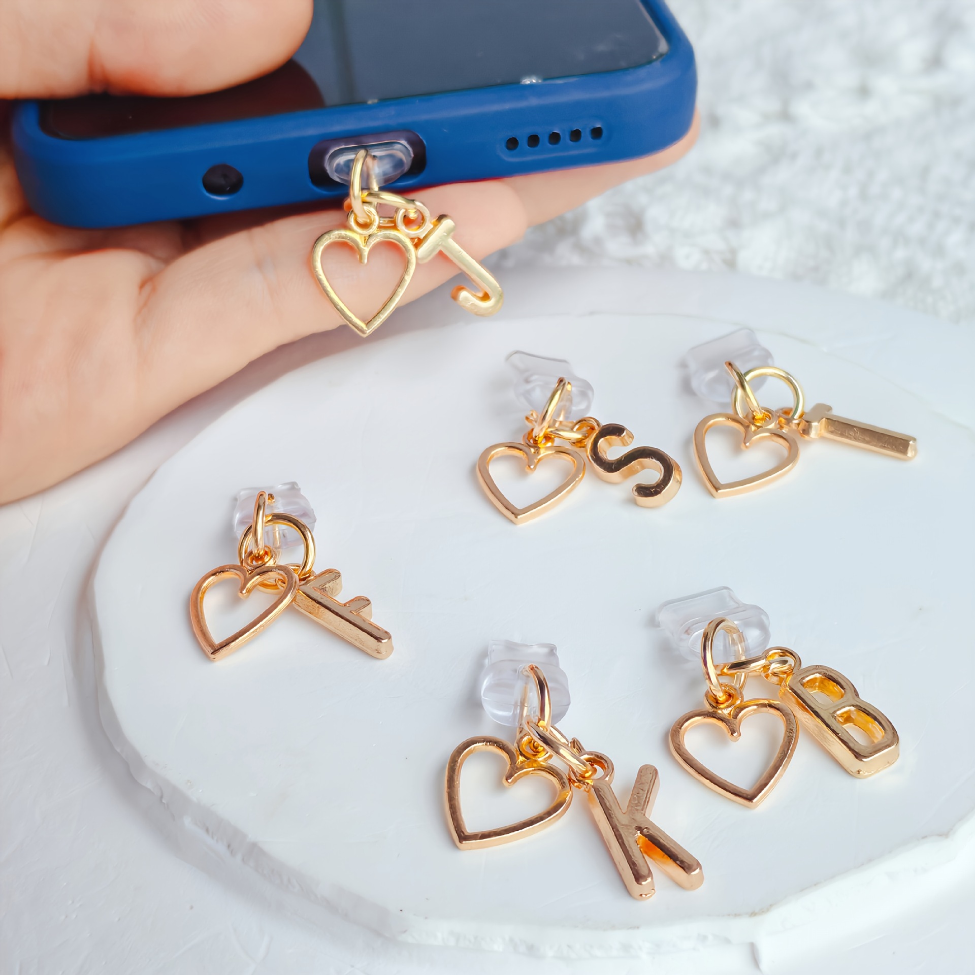 A-Z Letter Pendant Stylish Heart-Shaped Charging Port Dust Cover